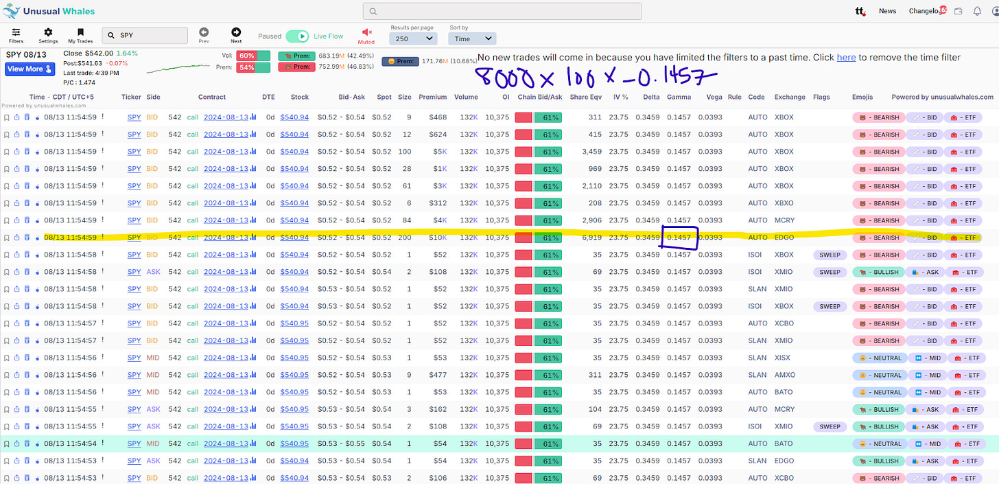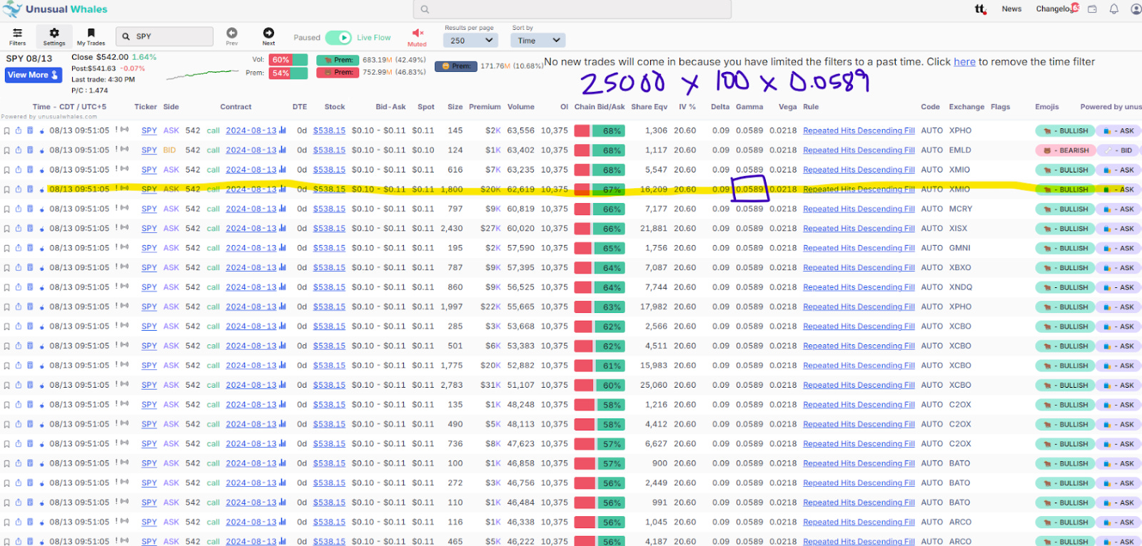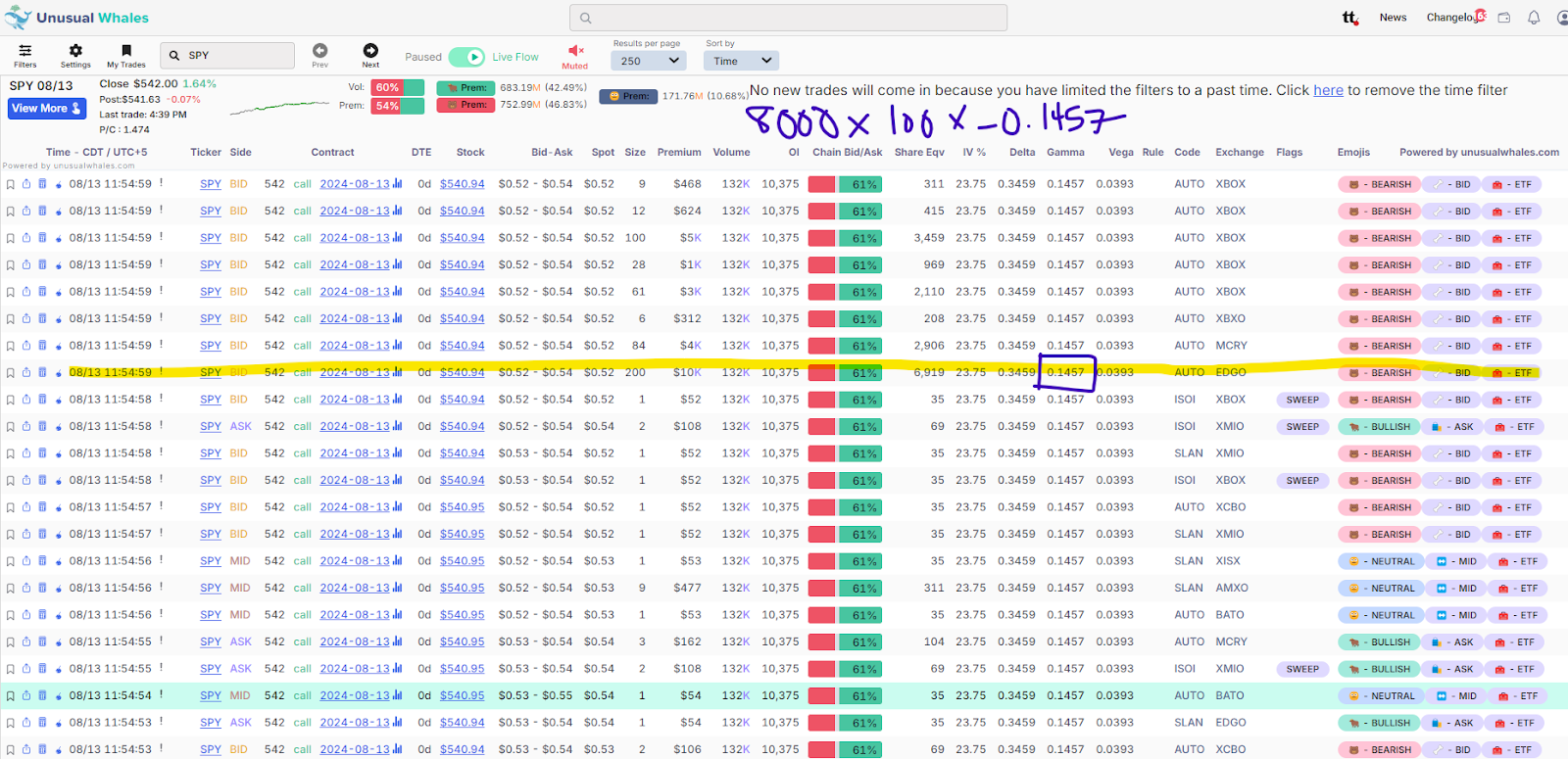 To demonstrate Gamma impact, weāll look into the $542 $SPY strike from August 13, 2024.Ā